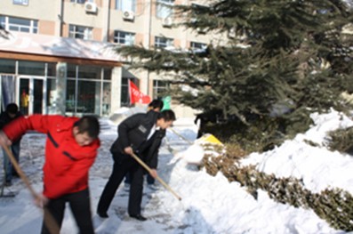 为响应昌平团区委号召,学院团委于2010年1月4日下午1点半,组织学生会、青年志愿者协会、文工团等178名学生干部开始了除雪防滑保安全活动。广大学生干部在学院团委书记冯雷的带领下顶着大风,冒着漫天刮落的雪花,清理了综合办公楼前、教师公寓前、二三公寓前、门前道路上的积雪,师生们在凛冽的寒风中,拿着铁锹,挥着扫帚,冒着零下十几度的严寒,从两头开路向中间汇合,开辟了一条条洋溢着温情的方便之路。