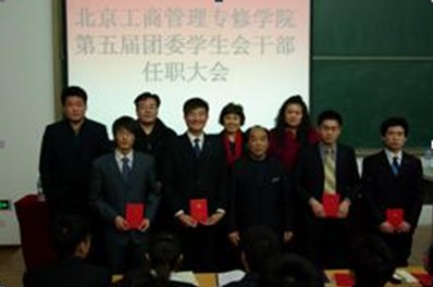 2009年12月1日下午2:30,北京工商管理专修学院第五届团委、学生会干部任职大会在新教学楼第五阶梯教室隆重召开。出席大会的领导有:学院学生工作副院长陈宝明、学院党总支办公室主任王淑珍、学院学生处处长魏绪文、团委书记冯雷。会议由团委副书记孟琼主持。全院学生干部参加大会。