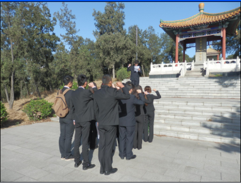 学生干部在英烈纪念碑前向先烈行鞠躬礼宣誓:人民为先,祖国至上;诚实勇敢,自律自强;奋发有为,誓作栋梁,;振兴中华,再造辉煌。为了中华民族的伟大复兴而不懈努力。只有这样,我们才能无愧于安息在这里的前辈,无愧于“学生干部”这一光荣称号。