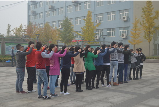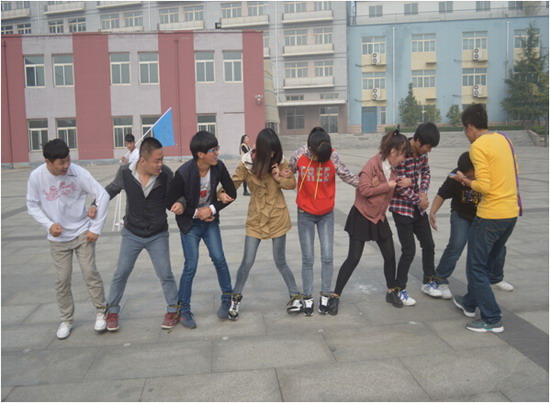 2014年10月24日晚,在外请教师仝老师的组织下,开展了一个破冰游戏,以此来增进彼此之间的友谊。25日上午,在学院中心广场举行了户外拓展活动,活动由“一圈到底、能量传输、急速60秒、不倒森林、蛟龙出海、激情节拍”六个游戏组成。在“蛟龙出海”中,队员需用绑腿带绑成横向一排,颠覆以往常规,或向左向右走,增加难度,让同学们深刻体会团队协作的重要性,也把整个活动氛围提到了一个高潮。当天,吉利大学外联部对我院学生会进行了经验交流,共同参加了整个活动。