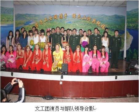 200911月份我院文工团学生冒着严寒,乘车前去森林武警部队参加武警森林指挥机动支队部‘赞老兵颂老兵’文艺晚会。在部队礼堂中献上了一首首温馨的歌曲,一支支灵动美丽的舞蹈。为部队的同志们献上了一场完美而感动的歌舞盛宴,场中的每一个人都感受到了我们的温馨的情谊。