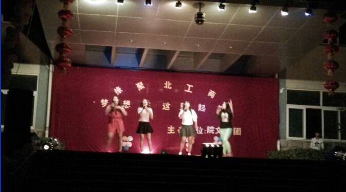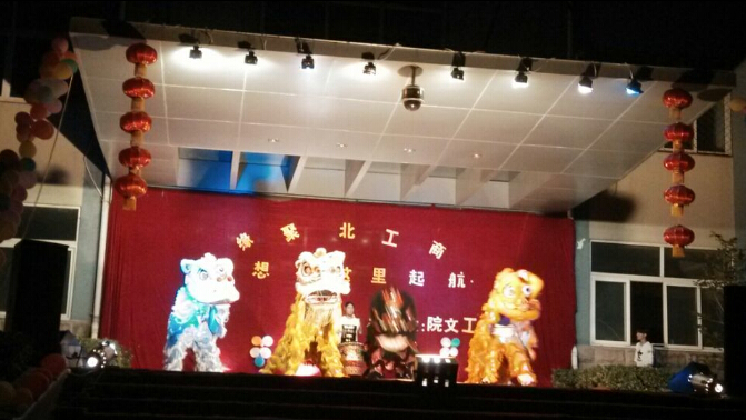 伴随着舞狮社带来的中华民族传统民俗《舞狮》,晚会正式开始。接着,由四位女生演唱的流行音乐《自由》,着实让人眼前一亮。小品《地道战》、《西游之北工商》搞笑幽默,笑点不断,引发现场阵阵掌声,得到了大家的一致好评。一首感人至深的《多情的土地》触动了大家心中最深刻的情感,不禁想起千里之外的家乡,两位歌手浑厚低沉的声线久久的萦绕在听众耳边。由文工团副团长陈幅栋演唱的《怒放的生命》则把整场晚会推向最高潮,演唱者与观众的激情互动全体学生放声合唱,一次又一次的惊喜,一波又一波的掌声,中心广场瞬间变成欢乐的海洋。随后三位舞蹈演员带来的舞蹈,集聚了所有人的目光,专业的舞姿和激情的表演展现了当代年轻人的活力与激情,婀娜的身姿尽显女性的柔美,现场喝彩不断。