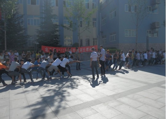 2012年8月22号上午9:00,入学教育活动组组织的拔河比赛在学院小广场举行最关键的阶段——决赛。各代表队都早已蓄势待发,准备一决胜负。