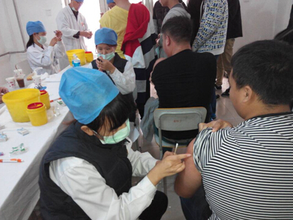 2014年10月21日,学院医务室配合南口医院社区预防保健科的医务人员,在九公寓为我院2014级新生进行“麻风腮”疫苗接种。新生在班主任的组织下有序接种,赵庚大夫现场解答学生疑问。