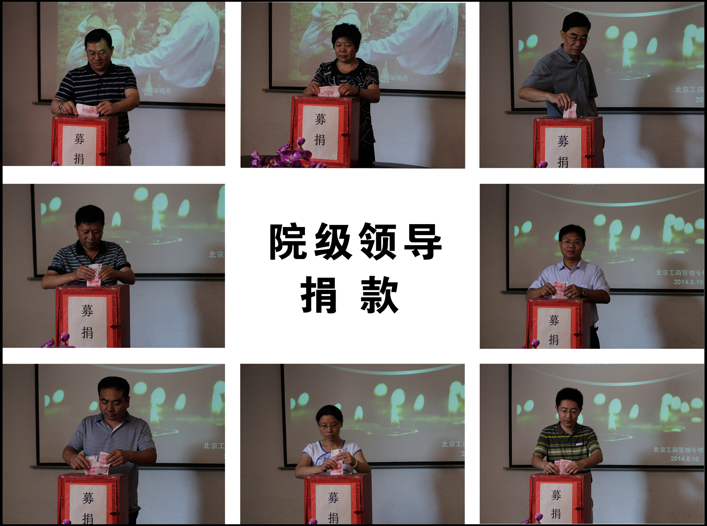 8月10日上午8:30,我院组织了院级领导捐款仪式,董事长(院长)平桂祥、执行院长孟宪颐、党总支书记李凤红等党政领导班子成员进行了捐款。我院党政领导带头,师生员工积极行动,全院迅速掀起了为灾区人民献爱心的活动。
