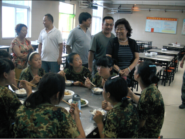 万院长在军训组组长季亚平以及各位驻训老师的陪同下,看望训练中的学生,仔细了解学生这段时间以来的训练及生活情况;视察医务室,了解学生身体键康状况;视察饭堂,详细了解学生的饮食情况;关切问候少数民族学生的日常饮食与身体健康。