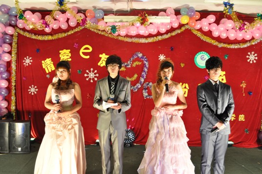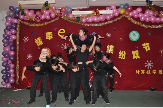 为活跃学校文化氛围,丰富同学们的课余文化生活,促进同学们身心健康发展,加强师生间沟通,增强凝聚力,计算机学院团总支、学生会于2010年12月22日晚19:00在我院东教二阶梯活动中心隆重举办了盛大的“情牵e友 缤纷双节”大型文艺联欢晚会。出席本次晚会的领导有:学院党总支书记李凤红,教学工作副院长兼计算机学院院长陈晓曦,学生工作副院长陈宝明,保卫处处长翁青山,人力资源副总监刘绍臣,招办主任赵晓杰,招办副主任兼团委书记冯雷。招办张子彪老师,学生处景祥飞老师,督导处李娟老师及计算机学院的全体师生们参加此次晚会。