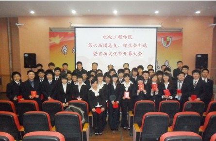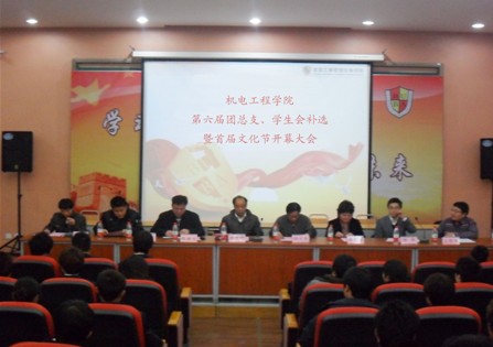 2010年11月30日,机电工程学院在北教学楼多功能报告厅成功召开了机电工程学院第六届团总支、学生会补选暨首届文化节开幕大会。出席本次会议的有:学生工作副院长陈宝明、学生处处长魏绪文、院团委书记冯雷、机电工程学院院长陶火生、机电工程学院副院长李秀荣、学管干事王有伟、教学秘书徐伟及各班班主任,会议由团总支书记尚李月主持。