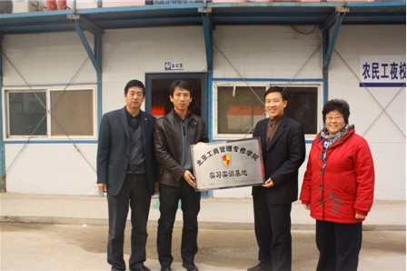 2010年11月18日下午,我院课程开发与教育合作中心副主任张国金、建筑工程学院常务副院长马连弟、副院长孙颖,国际学院副院长张少峰、利比亚班班主任张春敏老师、就业办闫洪军老师以及利比亚班学生代表一行在学院院长助理周玉洁的带领下来到北京建工四建工程建设有限公司清河小营东居住项目工地,和该项目的领导、技术人员就学生的现场教学、实习实训事宜进行商讨沟通,并在工地现场为我院第51个实习实训基地举行挂牌仪式。