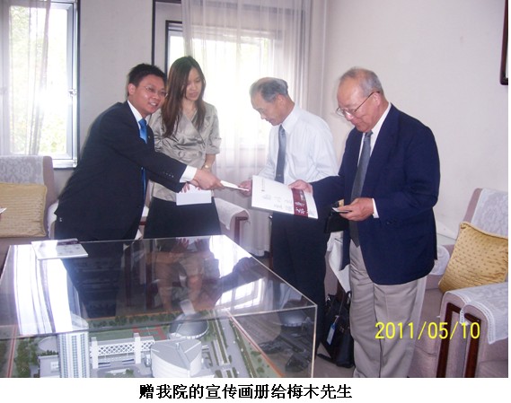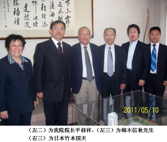 5月9日,日本日中友好技术人才交流协会副会长梅木信秋,日本东京大学董事总经理竹本国夫,以及日中友好技术人才交流协会远程先生一行3人来京,在中国国际青年交流中心第二会议室与我院进行了合作洽谈。我院院长平桂祥、院长助理万全球、建筑工程学院(二级学院)院长马连弟以及两名学生参加。此次洽谈得到了团中央中国国际青年交流中心副主任阎学谦博士的大力支持。