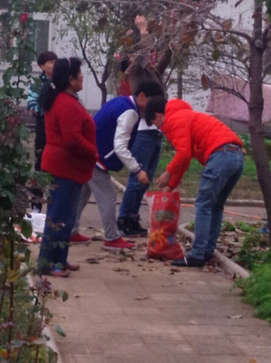 到达敬老院后,院团委对人员进行了分工,有的同学去帮老人们摘柿子;有的同学负责给老人打扫卫生、擦窗子、拖地等;有的同学陪老人聊聊天、表演节目。