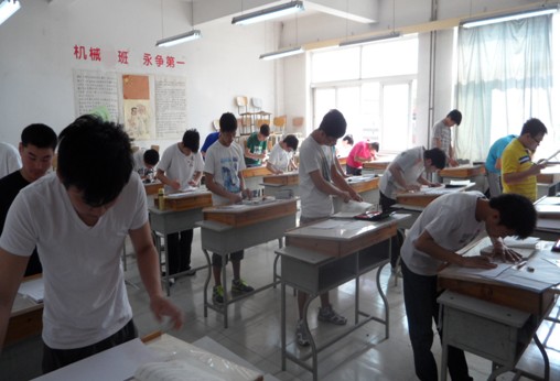 2012年5月13日上午,机电工程学院在东教218教室,开展了实践教学的第一个环节——手工绘图。机电工程学院陈宝明院长、课程开发中心陶火生主任亲临现场指导。